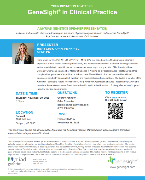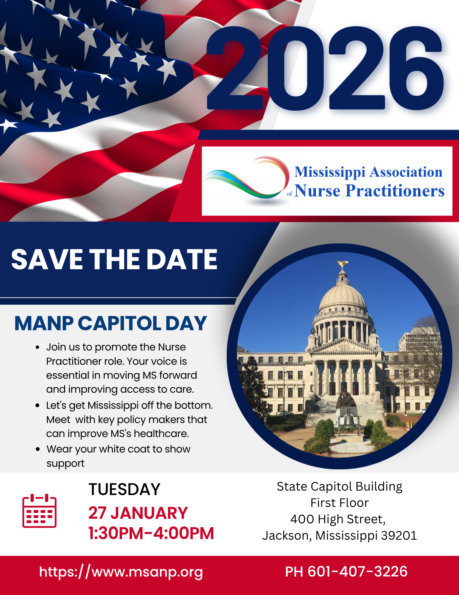 The American Association of Nurse Practitioners® accredits the MS Association of Nurse Practitioners as an approved provider of nurse practitioner continuing education. Provider number:1640685. Activities are planned in accordance with AANP Accreditation Standards and Policies. MANP is approved to provide continuing education through 10/31/2026. MANP has been approved to provide continuing education for the following: