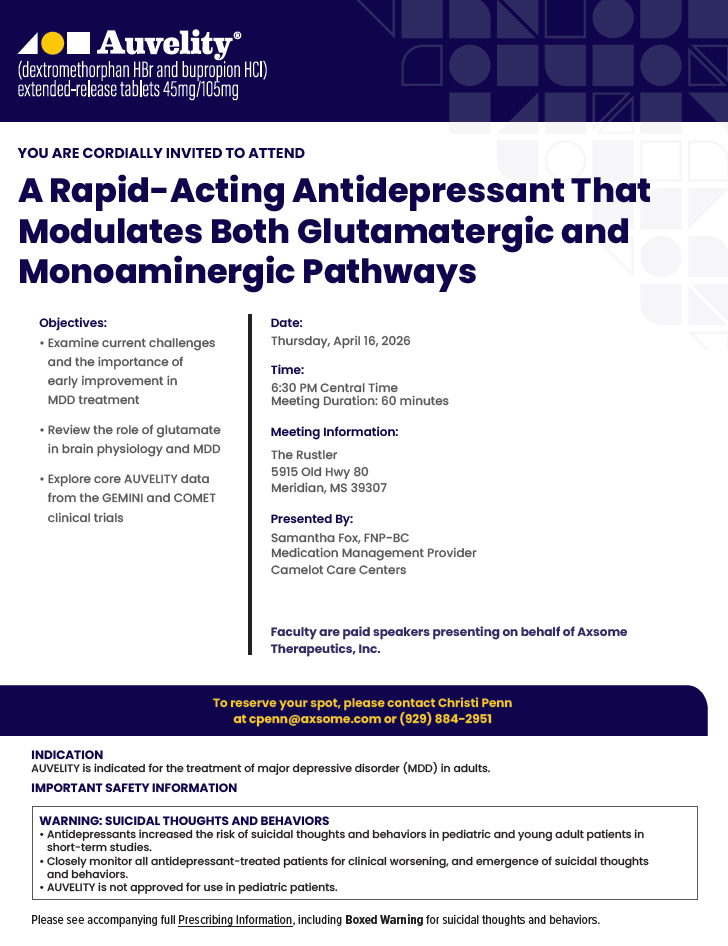 Agenda Highlights Include: Alzheimer’s Disease, Pediatric Mental Health, Burn Care, Nephrology, Congenital Heart Disease, Controlled Substances, Diabetes Type 3C, Thyroid disease, Vitamin D Deficiency, Insulin Resistance, Men’s Health, Aquablation, Prostate Cancer, Male and Female Hormone Replacement Therapy, Menopause, Anxiety, Management of patients with prosthetics and orthotics, DEA Drug Diversion, Drug Addiction, 2-hour MS Board of Nursing, and more. AGENDA (MANP reserves the right to adjust subject matter based on speaker availability.)